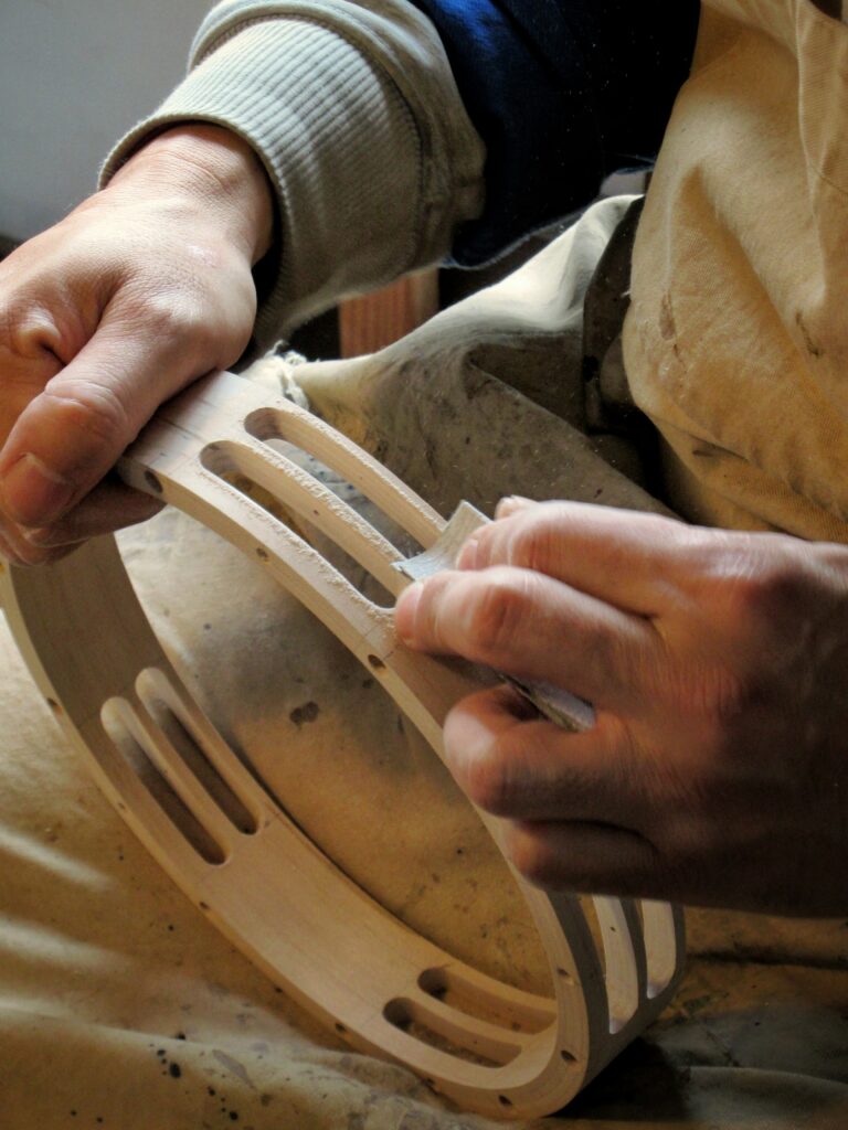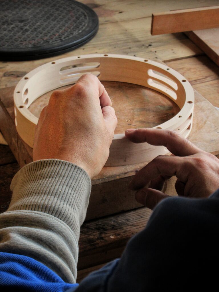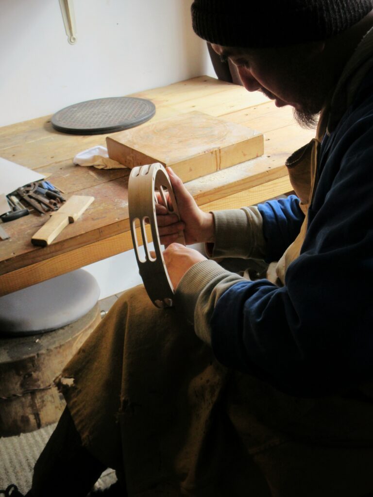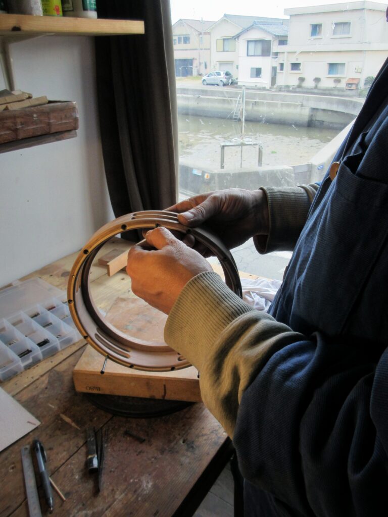 During the filming process of my latest documentary, I also shot some stills to capture the detailed moments of creating a tambourine entirely by hand. These photos were taken at the workshop of Shigeru Shimada.